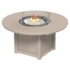 This round dining height fire pit table is designed for outdoor dining areas and open air seating spaces. It combines a dining surface with an integrated center gas burner and push button ignition. The table body is constructed from recycled HDPE poly composite with exterior hardware intended for outdoor environments. A tempered glass wind guard and decorative fire glass are included to help manage airflow around the flame area. The unit is configured for liquid propane and can be converted to natural gas using a compatible conversion kit. The table is intended for outdoor use in open air spaces with proper ventilation. Assembly is required.