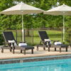 This outdoor lounge chair is designed for use in poolside areas, patios, and decks. It features an adjustable backrest that allows multiple reclining positions and integrated wheels for repositioning. The frame is constructed from recycled HDPE poly lumber with stainless steel hardware intended for outdoor environments. The material does not absorb moisture and can be cleaned with soap and water. The chair is suitable for regular exposure to sun and rain in outdoor settings. Assembly is required.