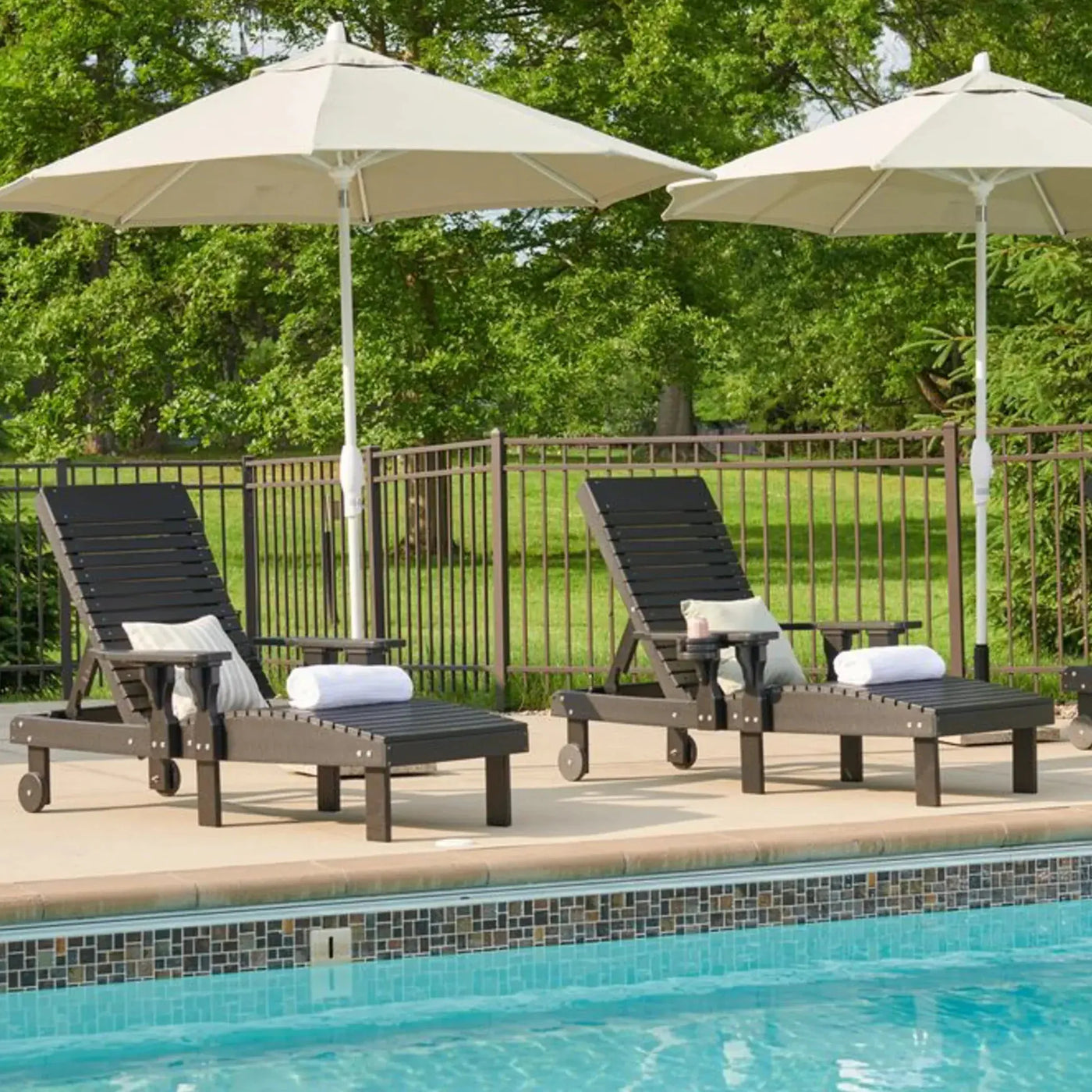 The LuxCraft Poly Composite Lounge Chair defines premium poolside relaxation, featuring an adjustable backrest and integrated wheels for effortless mobility across your deck or patio. This all-weather chaise lounge is Amish-handcrafted in the USA from 90% recycled HDPE poly lumber, providing a heavy-duty frame that resists moisture, salt air, and UV fading without ever needing to be painted. Engineered for a maintenance-free lifestyle, this durable sun lounger utilizes marine-grade 316 stainless steel hardware to ensure a rust-proof finish that remains pristine through years of sun and rain exposure.