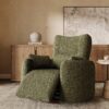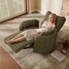 The overall dimensions are approximately 43.3 x 38.6 x 40.9 inches, with a seat height of 19.5 inches and a seating depth of 23.5 inches. It is upholstered in chenille fabric, which may show natural material variations. No assembly is required. This chair is suitable for indoor use in living rooms or lounges, providing adjustable seating for relaxation. For care, avoid direct sunlight, do not use chemical cleaners, and perform periodic checks.